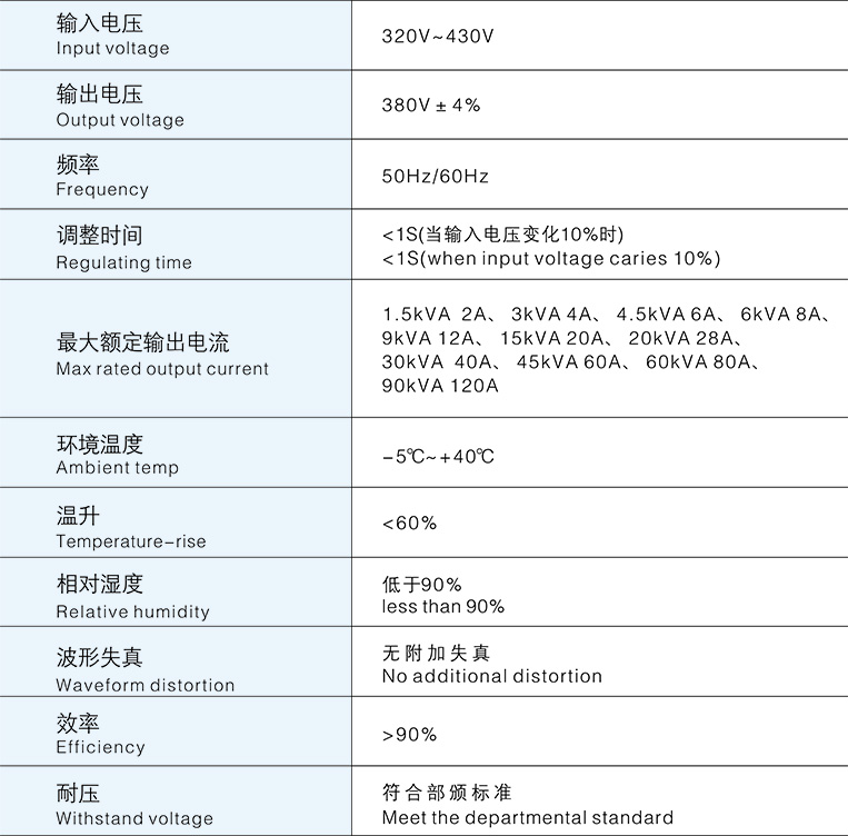 TNS(SVC)系列高精度全自動三相交流穩(wěn)壓器是由三只單相高精度全自動交流穩(wěn)壓器采取Y聯接而成,輸入電壓范圍寬,效率高, 具有過(欠)壓、過流等保護,穩(wěn)壓精度高,輸入與輸出電壓波形相同,產品體積小,重量輕。 適用于家庭、工廠、學校、機關、商店、科學實驗精密儀器等三相用電設備、設施的供電, 可以長時間運行。
