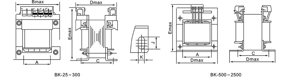 BK系列控制變壓器外形及安裝尺寸: