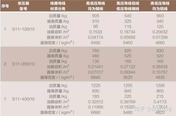 通過下表可以看出,高低壓繞組全部是鋁的變壓器比全銅變壓器總質(zhì)量還高出55公斤,這主要是因?yàn)槠淦魃碇亓俊⒂偷闹亓?、油箱重量、器身體積等都增加了。而高壓導(dǎo)線為鋁線,低壓導(dǎo)線為銅線的變壓器也是相同的道理。