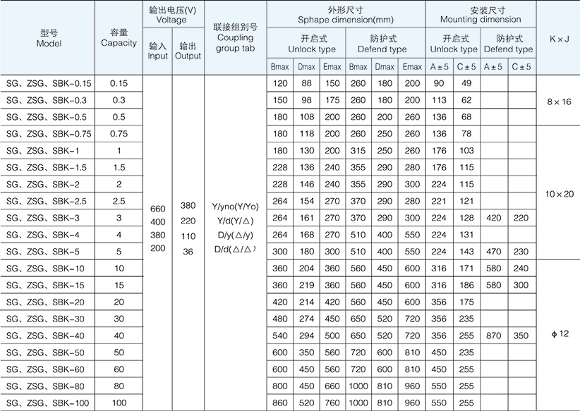 我公司多年來采用優(yōu)質(zhì)材料和先進的工藝技術(shù)專業(yè)生產(chǎn)160VA到600KVA之間,SG、ZSG、SBK系列三相干式(整流)變壓器,是我公司參照西門子公司同類產(chǎn)品最新研制開發(fā)數(shù)控系統(tǒng)用變壓器,尤其160VA- 16KVA之間的三相干式變壓器,它們的外形和安裝尺寸已經(jīng)標準化,與西門子4AP系列通用,產(chǎn)品符合VDE0550、IEC439、JB5555、GB226等國際、國家標準。