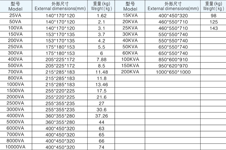 JMB、DG、BJZ系列照明、行燈控制變壓器安裝尺寸及重量